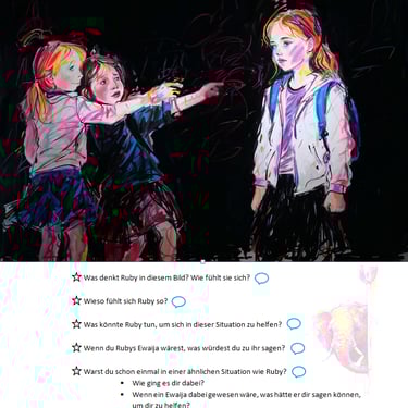 Sonja: Geb. 2019, ein starkes, kreatives Mädchen, das viele schöne, aber auch viele schwere Momente erlebt hat. Viele Ideen des Buches stammen von ihr.